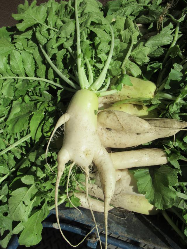 おでん料理に最適な大根がたくさん収穫されました。