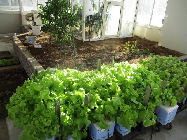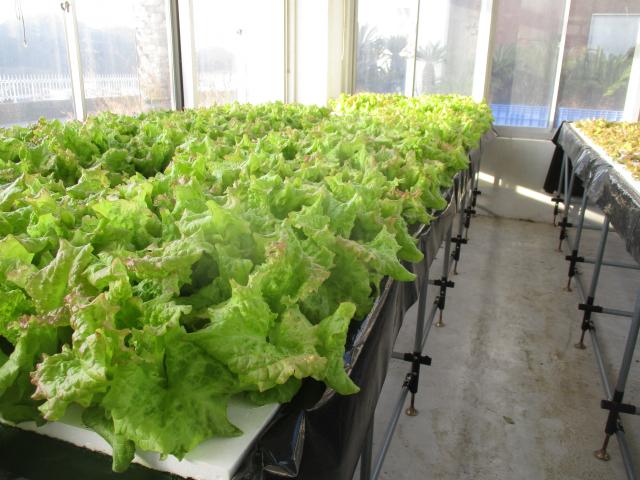 水耕栽培のサニーレタスが大きな葉をつけています