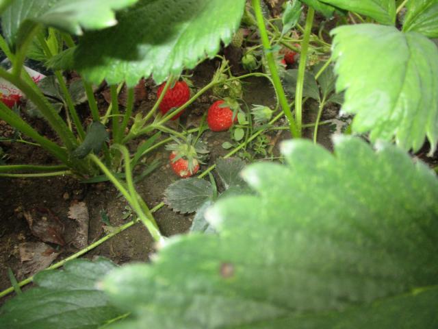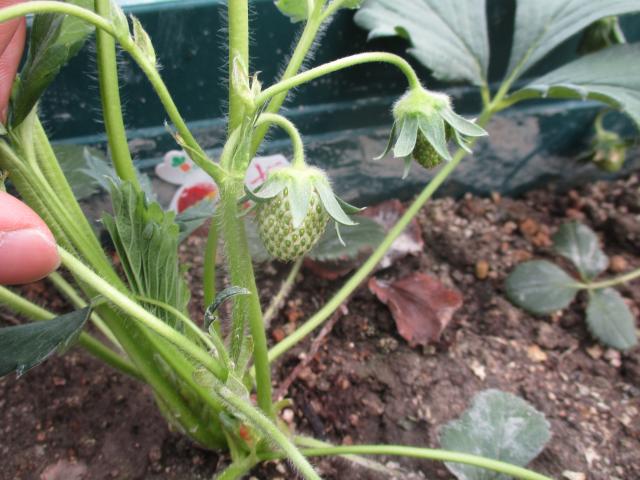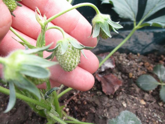 苺の実がかたちになってきています。