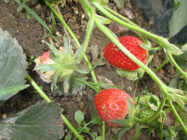 苺が色づいてきました